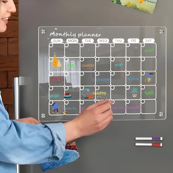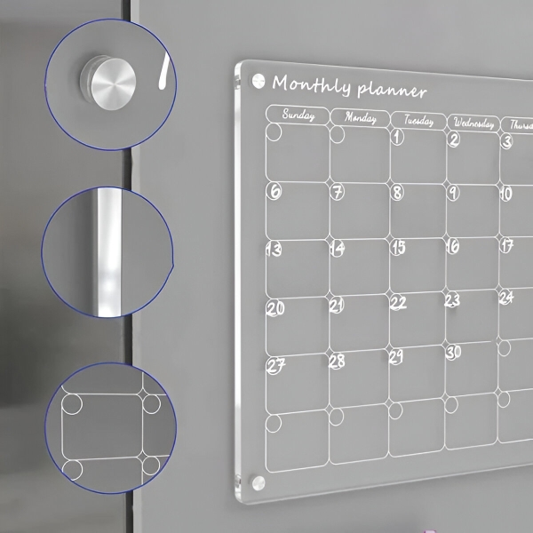 Papierplaner laufen nach einem Monat ab und landen direkt im Mülleimer. Die klare Acryloberfläche lässt sich mit dem mitgelieferten Tuch in Sekundenschnelle komplett reinigen – kein Verblassen, keine Flecken, keine Rückstände. Die Oberfläche ist kratzfest und schmutzabweisend, sodass sie nach hunderten von Wischvorgängen kristallklar bleibt.