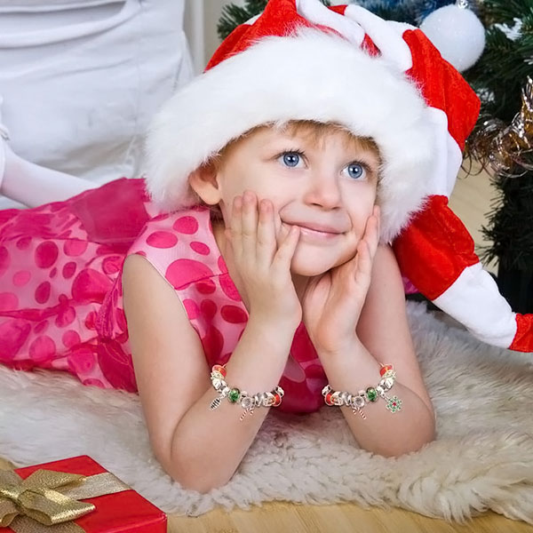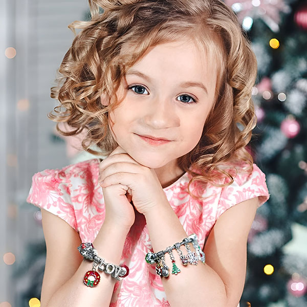 Eine ausgezeichnete Option für Mädchen, die gerne ihren eigenen Schmuck herstellen. Dieses Armband eignet sich hervorragend als Bastelarbeit für Partys, bei der die Mädchen Perlen und Anhänger mischen und kombinieren können, um ihr einzigartiges, modisches Armband für Weihnachten zu gestalten.