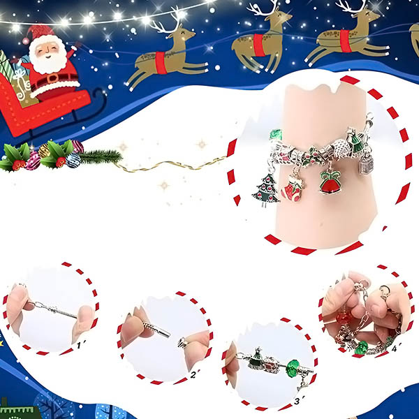 🎀 Verbreiten Sie in dieser Weihnachtszeit Freude mit unserem einzigartigen Adventskalender! Darin finden Sie 2 funkelnde Armbänder und 22 weihnachtliche Anhänger, darunter festliche Bäume, Schneeflocken, der Weihnachtsmann und vieles mehr, mit denen Sie Ihren Weihnachtsschmuck individuell gestalten können.