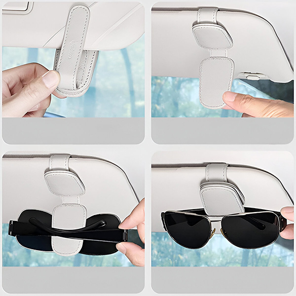 Machen Sie sich unterwegs keine Sorgen mehr um verlegte Sonnenbrillen! Dieser elegante Brillenhalter hält Ihre Brille sicher und leicht zugänglich und macht jede Fahrt angenehmer und organisierter. Er lässt sich mühelos an der Sonnenblende Ihres Autos befestigen, sodass Ihre Sonnenbrille immer in Reichweite ist.