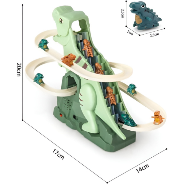 Der DINOCLIMBER verfügt über eine Dinosaurier-Achterbahn mit Musik und leuchtenden Farben, die ein mitreißendes Abenteuer schafft, während die Dinosaurier die Treppen hinaufsteigen – begleitet von Rhythmus und Effekten.