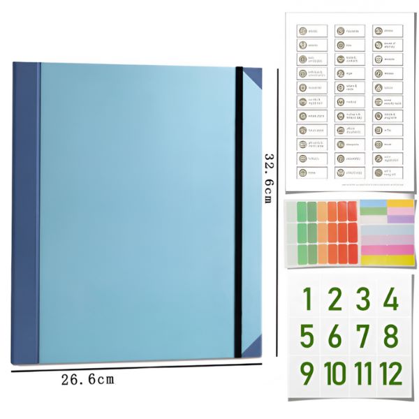 Handillustriertes Inhaltsverzeichnis und Haftetiketten machen das Verfolgen von Dokumenten einfach und stilvoll.