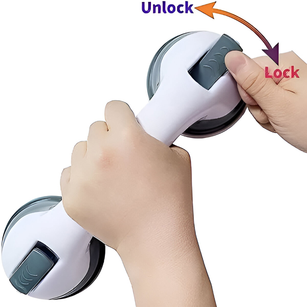 🛁 Starker Saughaltegriff – ausgestattet mit leistungsstarken Vakuum-Saugköpfen, die fest auf glatten, ebenen Oberflächen wie Fliesen, Emaille oder Fiberglas haften.