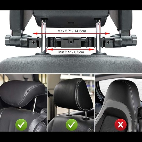 Kompatibilität: Geeignet für Autositze mit separaten Kopfstützen und einem Rückenlehnenabstand von 7-16 cm. Nicht geeignet für feste Kopfstützen.