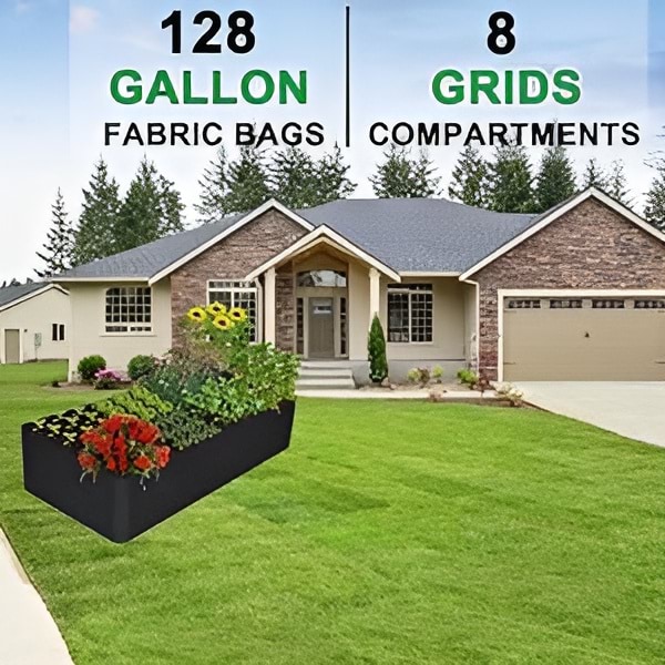 Dieses Hochbeet aus Stoff hat ein Design mit 8 Gittern in den Maßen 120 x 62 cm und einer Höhe von 30 cm.