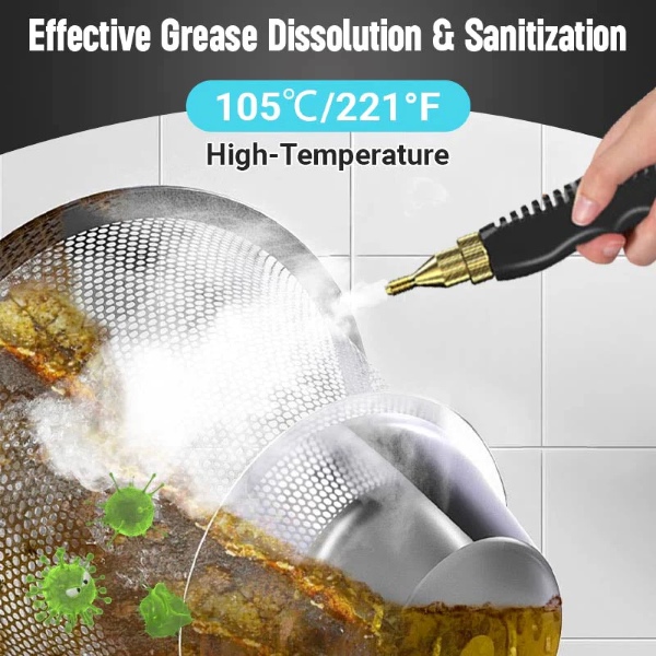 Die Nennleistung von 1600W erzeugt in weniger als 10 Sekunden Dampf bis zu 105℃ und entfernt schnell Fett, Schmutz, Staub und Flecken von verschiedenen Oberflächen.