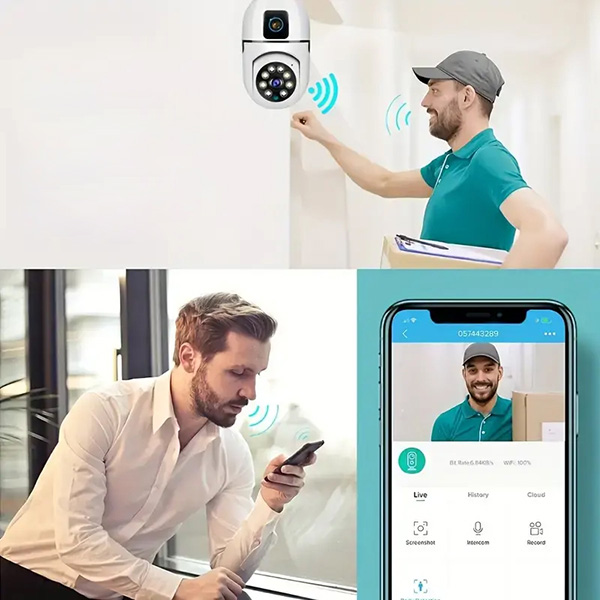 Mit dem Gegensprechlautsprecher von BULBCAM können Sie direkt über das Handy mit jeder Person vor Ihrer Tür sprechen. Sie können auch Anweisungen an das Lieferpersonal geben oder sogar Gäste leiten, wenn Sie beschäftigt oder abwesend sind, so dass Sie Ihre Besucher von überall aus verwalten können.