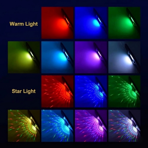 Lichtmodi: Warmweiß, Warm + Mehrfarben-Zyklus, Stern + Soundsteuerung, Stern statisch, hochintensives Sound-Stroboskop