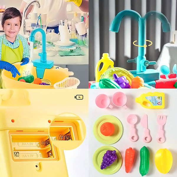 Das Waschbecken ist mit echtem fließendem Wasser ausgestattet, sodass sich das Spielen wie in der Realität anfühlt. Das fließende Wasser ist ein spannendes Element, das den Kindern hilft, die Welt um sie herum zu erforschen und mit ihr zu interagieren, und zwar durch die Brille des täglichen Lebens.