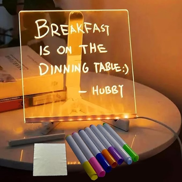 Sie suchen nach einer Möglichkeit, Ihrer Familie liebevolle Nachrichten zu hinterlassen? Mit unseren Leuchttafeln können Sie nicht nur liebevolle Botschaften für Ihre Kinder oder Angehörigen hinterlassen, sondern auch Nachrichten schreiben und Zeichnungen anfertigen. Ob es sich um eine Erinnerung an einen schönen Tag handelt oder um ein süßes Gekritzel, das die Stimmung aufhellt, diese Tafeln bieten eine kreative und interaktive Möglichkeit, zu kommunizieren und Zuneigung auszudrücken. Lassen Sie Ihre Liebe mit unseren beleuchteten Nachrichtentafeln hell erstrahlen!