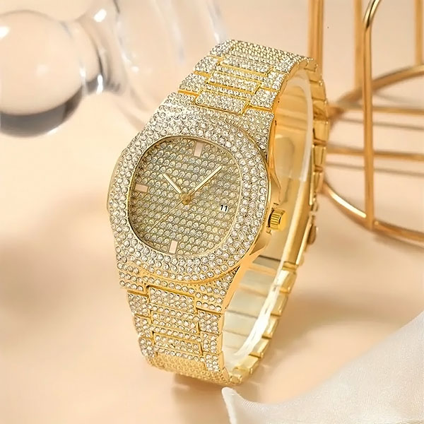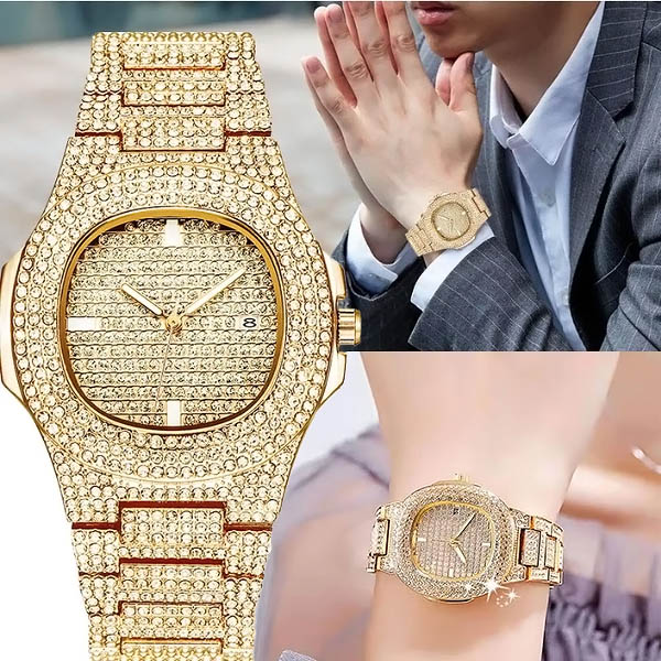 Tausende von schimmernden Kristallen machen diese Uhr zu einem echten Hingucker. Sie ist nicht nur ein Zeitmesser – sie ist ein kühnes Statement für Luxus und Eleganz.