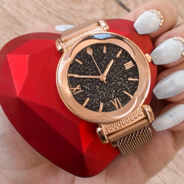 Mit Präzision und Eleganz gefertigt, sorgt dieser Zeitmesser nicht nur dafür, dass du pünktlich bist, sondern zieht auch überall die Blicke auf dich. Der magnetische Armbandverschluss sorgt für einen sicheren und bequemen Sitz und macht es zum Kinderspiel, sie den ganzen Tag über zu tragen. 💫