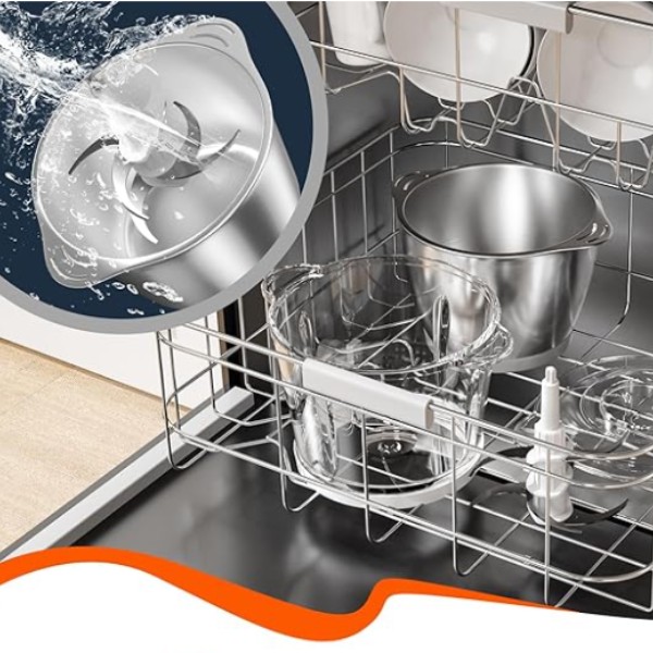 Die Schüssel ist spülmaschinenfest, was die Reinigung mühelos macht. Stellen Sie sie nach Gebrauch einfach in die Spülmaschine für ein sauberes, einsatzbereites Gerät.