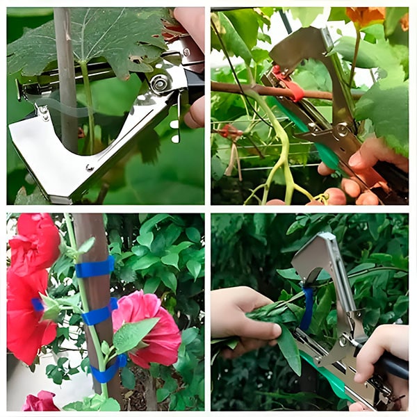 Das dem Hefter beiliegende Band ist extrem glatt, so dass Ihre Pflanzen keine Kratzer oder Abschürfungen erleiden. Und natürlich ist das Band stark genug, um den Zerrungen standzuhalten, die oft durch schlechtes Wetter und Wind verursacht werden – Sie müssen sich also keine Sorgen um Ihre Pflanzen machen, wenn der nächste Wind kommt.