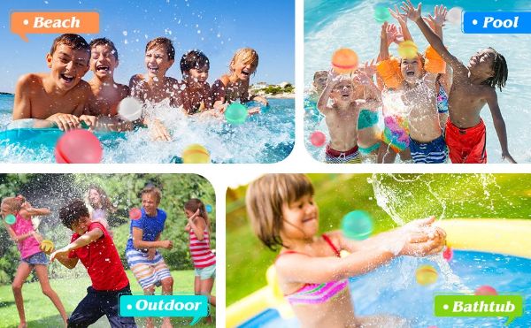 Unabhängig vom Alter sind unsere wiederverwendbaren Wasserballons eine aufregende und unterhaltsame Methode, um die Hitze an heißen Sommertagen zu besiegen. Sie bieten unendliche Möglichkeiten für eine Vielzahl von Spielen und Aktivitäten, wie z. B. Wasserballon-Weitwurf, Staffelläufe und Wasserschlachten im Pool.