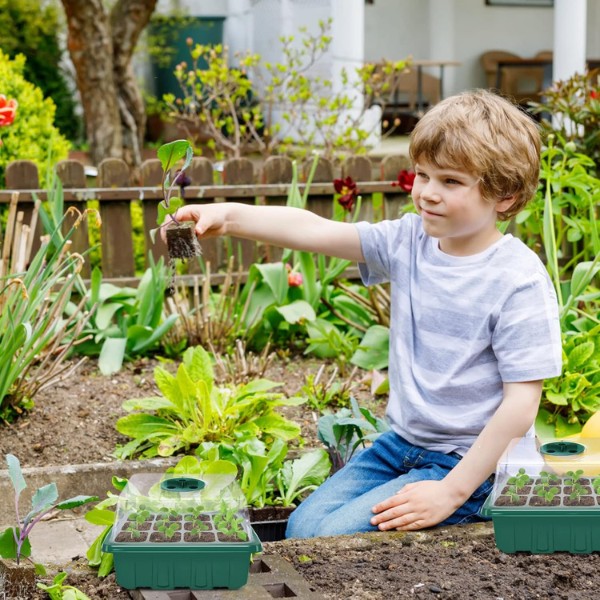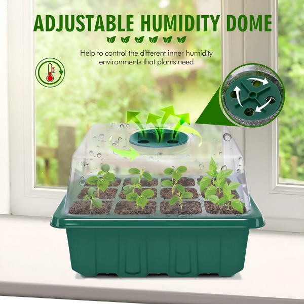Jede Schale hat 12 Löcher und einen Deckel mit Belüftungsschalter. Jetzt können Sie die Luftfeuchtigkeitswerte kontrollieren und die beste Umgebung für Ihre Keimlinge sicherstellen. Ziehen Sie gesunde, gut belüftete Wurzeln für stärkere Pflanzen.