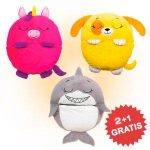 Ihr Kauf beinhaltet einen PILLOSACK mit der Tierfigur Ihrer Wahl: Gelber Hund, rosa Einhorn, grauer Hai.