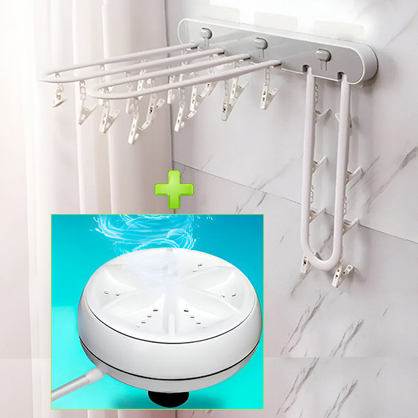 🎁 Sie erhalten – 1x Wäschetrockengestell + 1x tragbare Mini-Waschmaschine