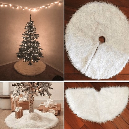 Der Weihnachtsbaumteppich aus weichem und kuscheligem Öko-Pelz wurde speziell entwickelt, um das Aussehen eines schneebedeckten Bodens zu erwecken und bietet eine reizvolle Grundlage für Ihre Geschenkausstellung.