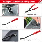 Enthält eine Zange und zwei Demontagestangen, um runde Clips, quadratische Befestigungen und Kunststoffnieten mühelos zu entfernen.